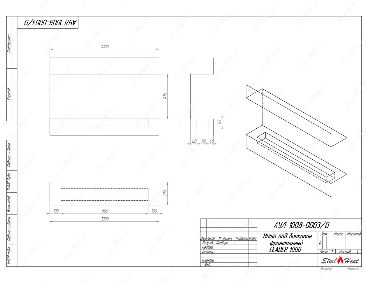 Встраиваемый Биокамин фронтальный SteelHeat Leader 1000предназначен для встраивания в глухие ниши из гипсокартона, кирпича, пеноблоков, бетона.