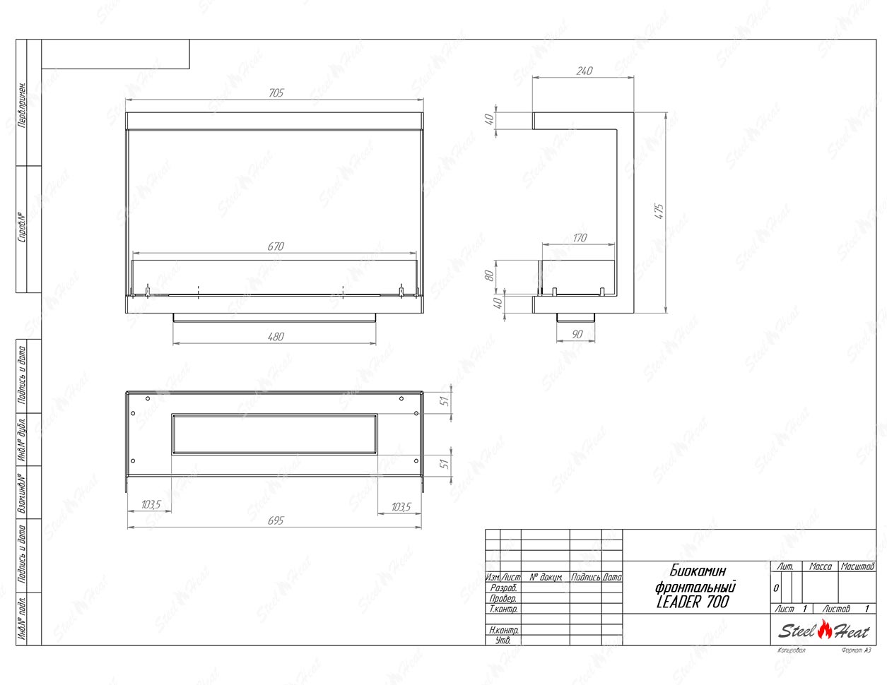 Встраиваемый Биокамин фронтальный SteelHeat Leader 700 предназначен для встраивания в глухие ниши из гипсокартона, кирпича, пеноблоков, бетона.