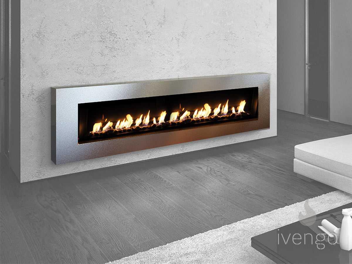 Навесной биокамин Ivengo Bensen имеет горизонтально вытянутую форму, поэтому идеально подходит для комнат со стандартной высотой потолков. Лучше всего он будет смотреться в помещениях, оформленных в стиле минимализма или хай-тэк.