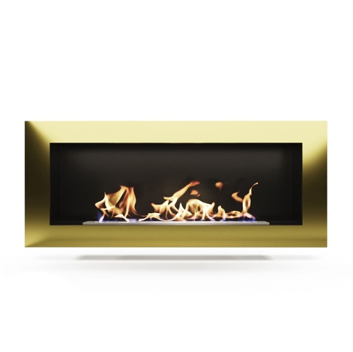 Биокамин золотого цвета, который прекрасно подойдет как встраиваемый вариант для украшения вашего дома.