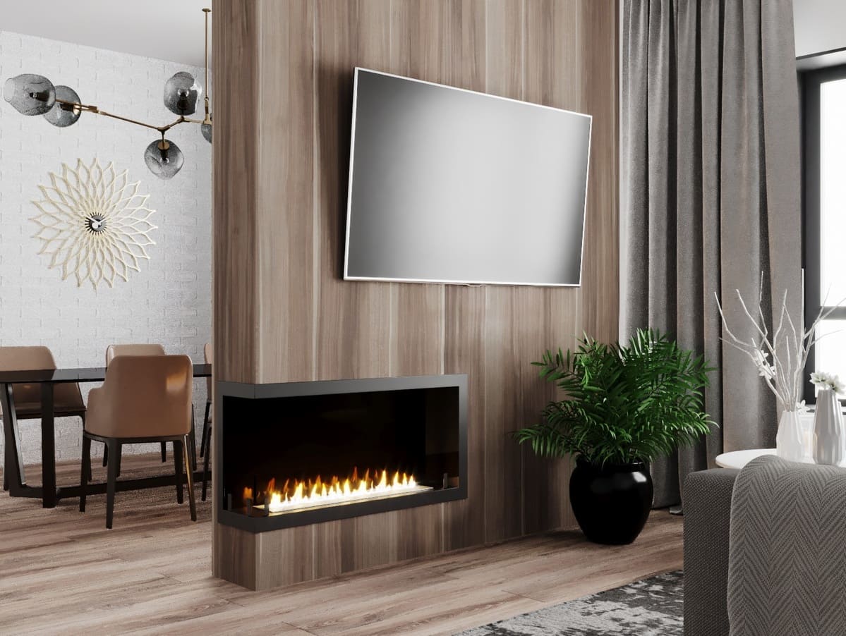 Декоративное стекло — крепится на всю заднюю стенку очага. За счет своего зеркального отражения, пламя визуально становится в 2 раза больше и кажется, что камин горит еще ярче.