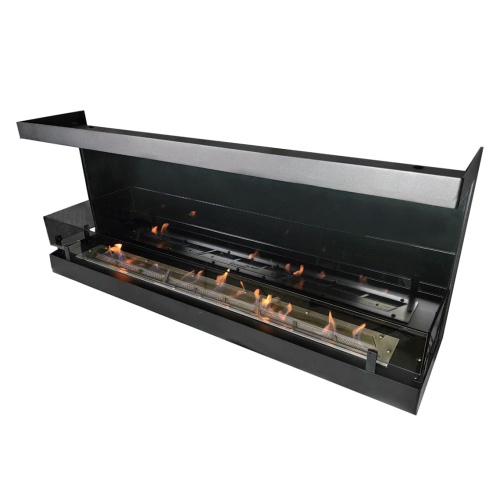 Дополнительно можно установить декоративное стекло, а также топливный блок с регулировкой пламени по высоте горения. Декоративное стекло устанавливается на заднюю стенку биокамина. Такое стекло визуально увеличивает огонь в два раза и делает горение еще более привлекательным.