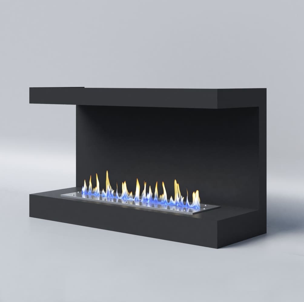 Декоративное стекло — крепится на всю заднюю стенку очага. За счет своего зеркального отражения, пламя визуально становится в 2 раза больше и кажется, что камин горит еще ярче.