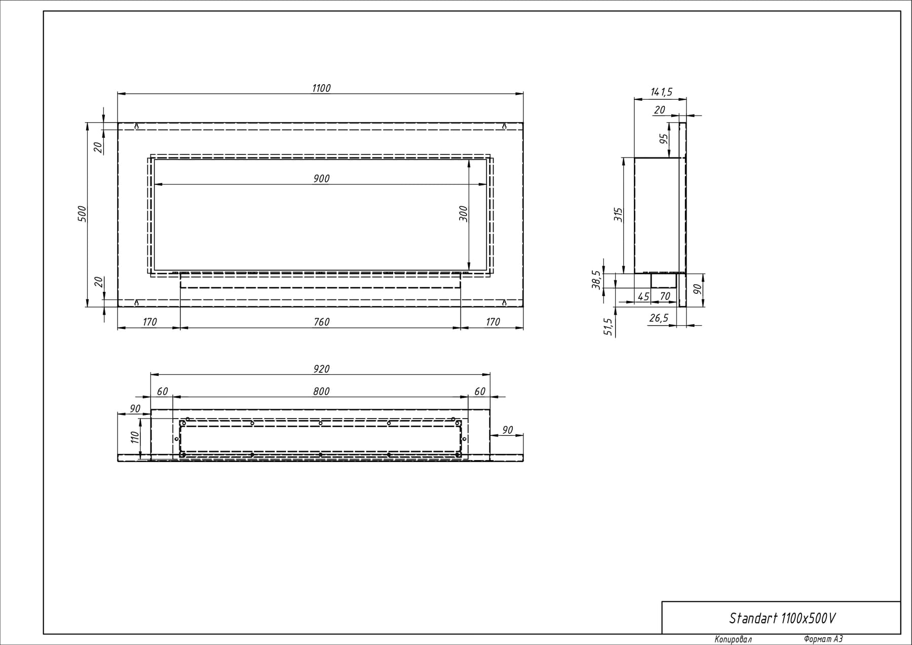 Встраиваемый биокамин «Голд 1100V» изготовлен из латуни и нержавеющей стали, окрашен термостойкой порошковой краской.