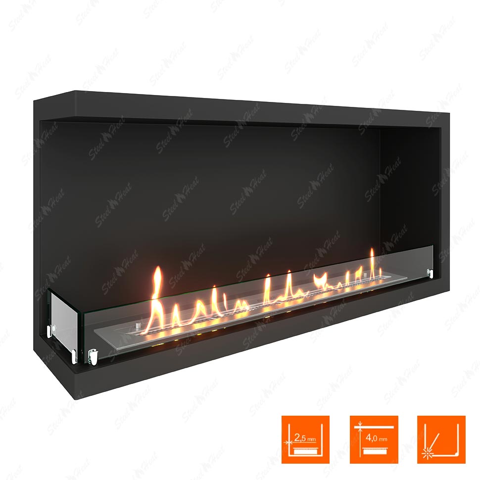 Встраиваемый Биокамин угловой SteelHeat Leader 1000 левый предназначен для встраивания в глухие ниши из гипсокартона, кирпича, пеноблоков, бетона.
