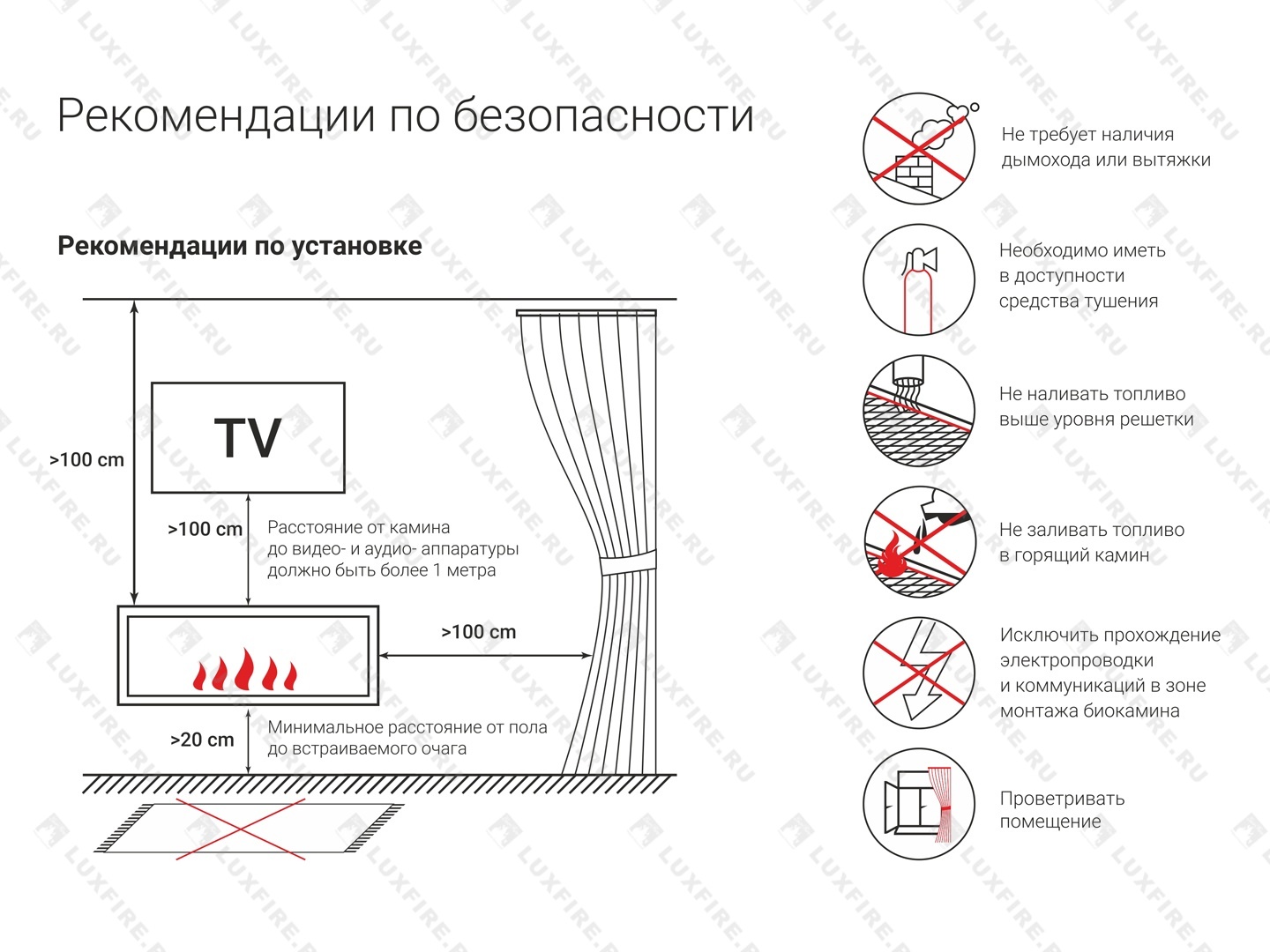 Представляет собой сборный металлический каркас с топливным блоком Lux Fire 900 М, закрепленный на 4 дистанционных держателях к защитному стеклу..