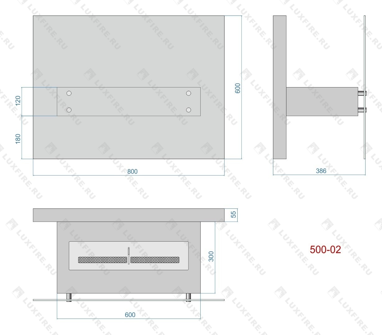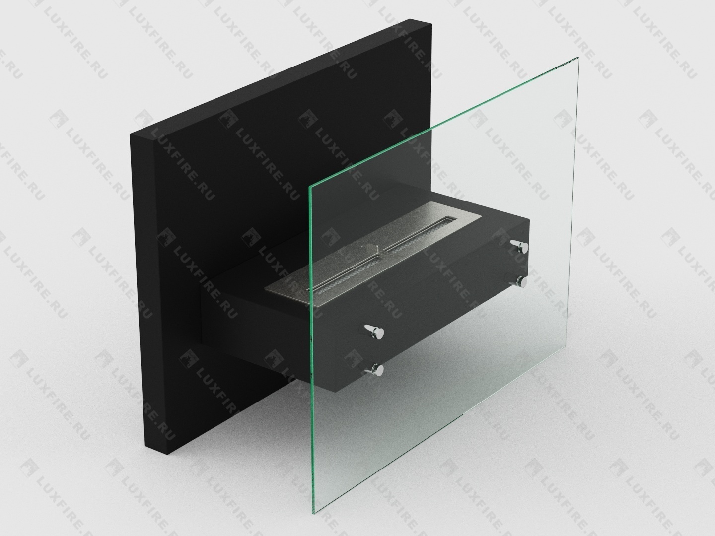 Представляет собой сборный металлический каркас с топливным блоком Lux Fire 500 М, закрепленный на 4 дистанционных держателях к защитному стеклу..
