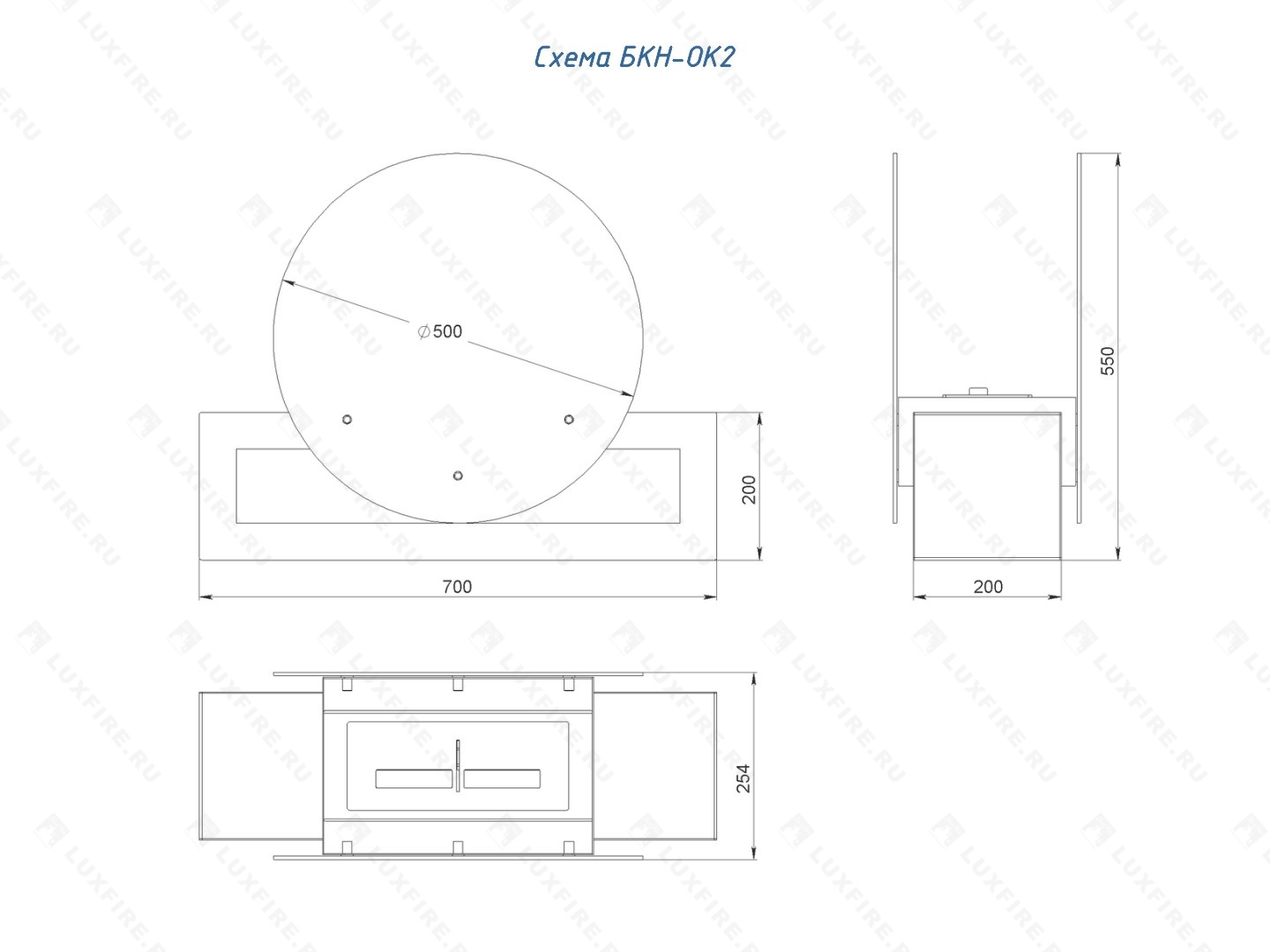 Размер биокамина (ВхШхГ; мм): 550х700х254.