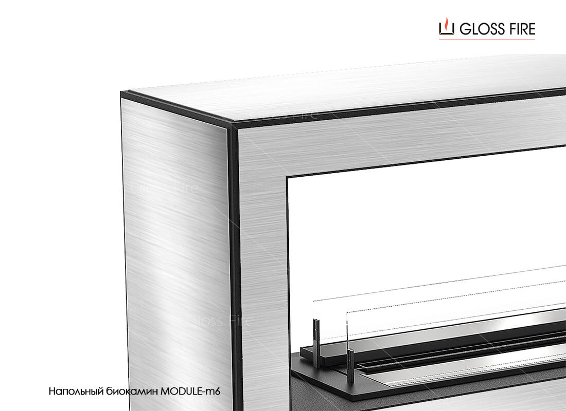 Напольный сквозной биокамин Module-m6 выполнен из высококачественной стали. Корпус имеет декоративный внешний вид благодаря высококачественно отшлифованной поверхности. Наружные углы и внутренняя часть корпуса окрашены термостойкой краской. Камин комплектуется топливным блоком, который воспроизводит насыщенное жёлтое пламя.
