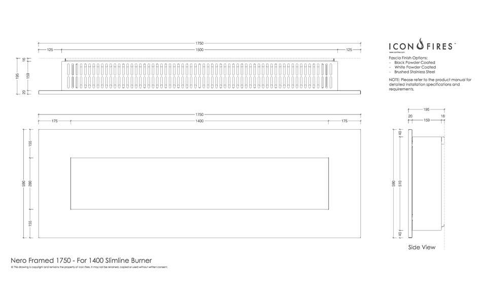 Настенный биокамин Nero 1750B с декоративной рамкой чёрного цвета комплектуется горелкой ICON FIRES Slimline 1400mm.Камин изготовлен из стали с декоративным покрытием термостойкой краской.