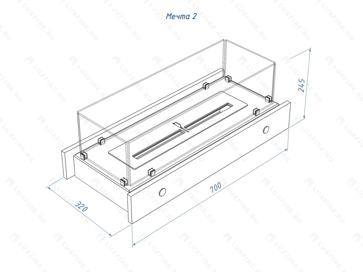 Размер биокамина (ВхШхГ; мм): 250х700х320.