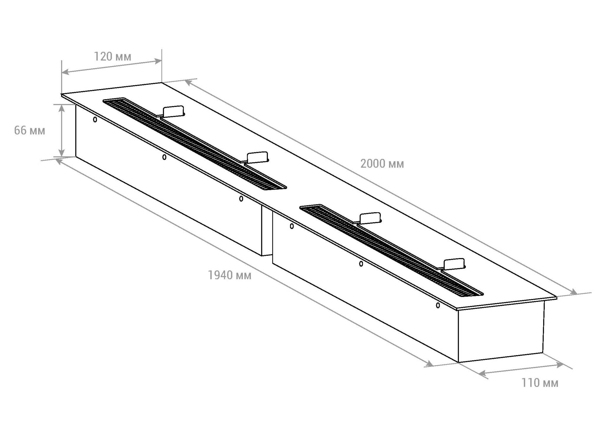 Биокамин выделяется своими размерами, обычно не производят топливные блоки шириной больше 1200 мм, но благодаря технологии Laser Tech, есть возможность скрепить два топливных блока в один. Причем никакого шва или места крепления вы не заметите, с лицевой стороны это абсолютно единая линия огня.
