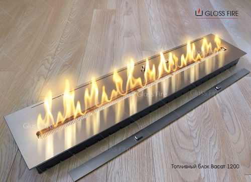 Возможно комплектация биокамина немецким декоративным огнеупорным стеклом высотой 50мм либо 100 мм (как опция).