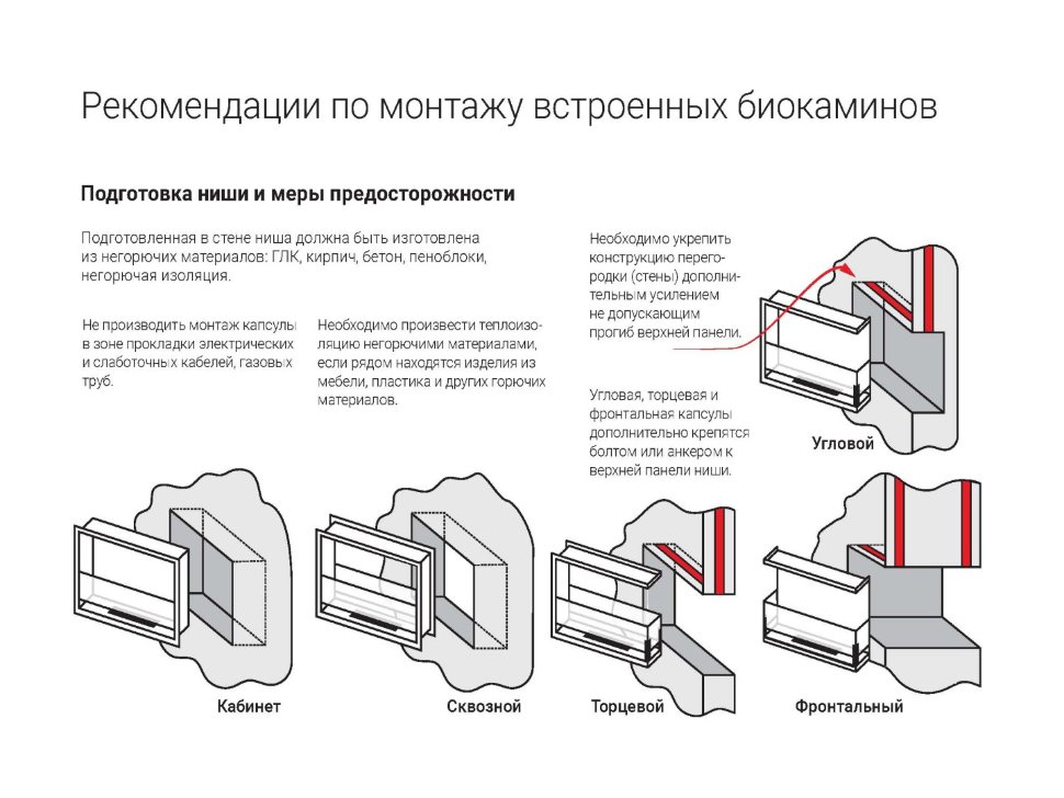 Рекомендации по установке встраиваемого фронтального биокамина: