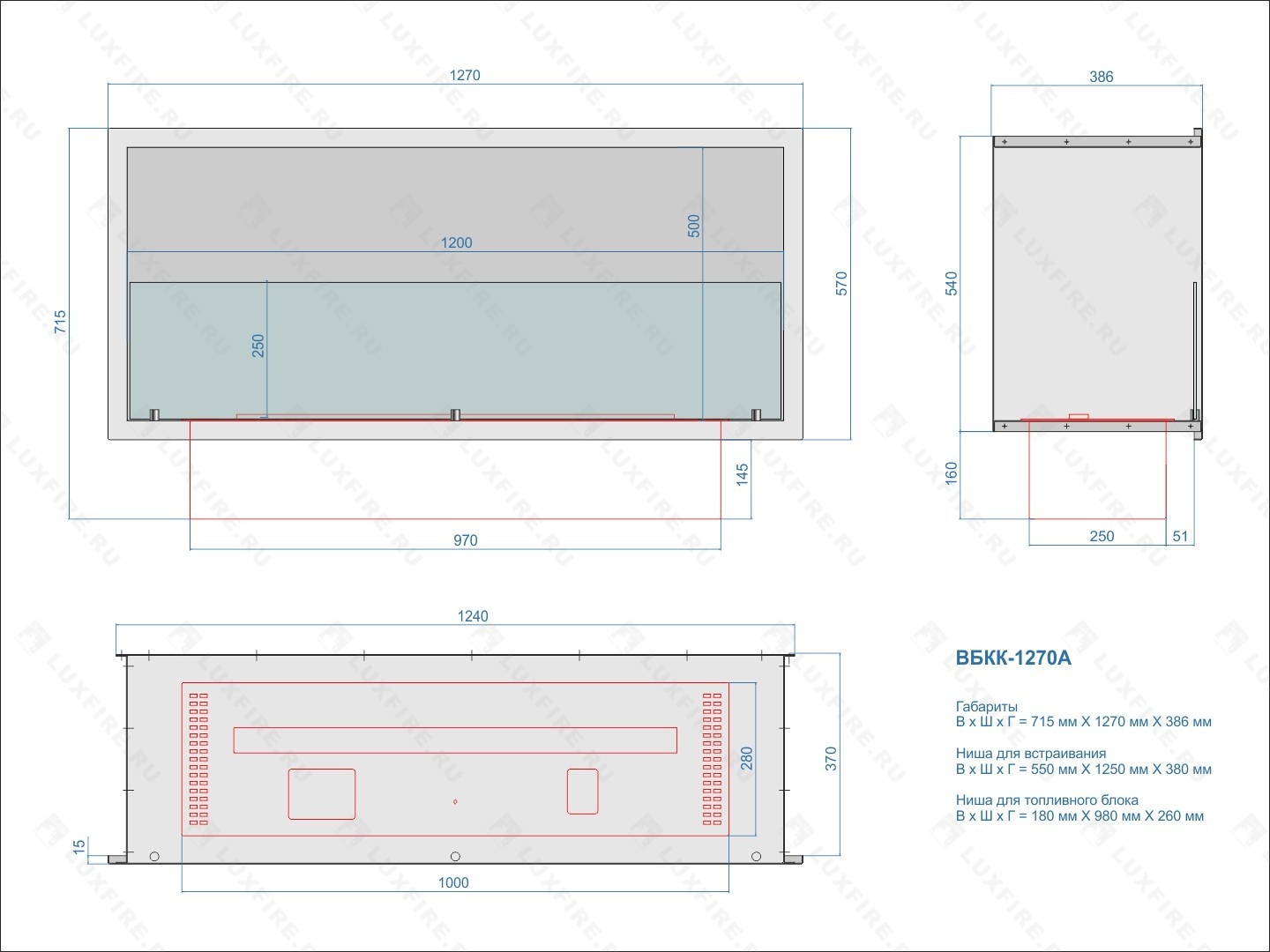 Встроенный автоматический биокамин Lux Fire Кабинет 1270 A