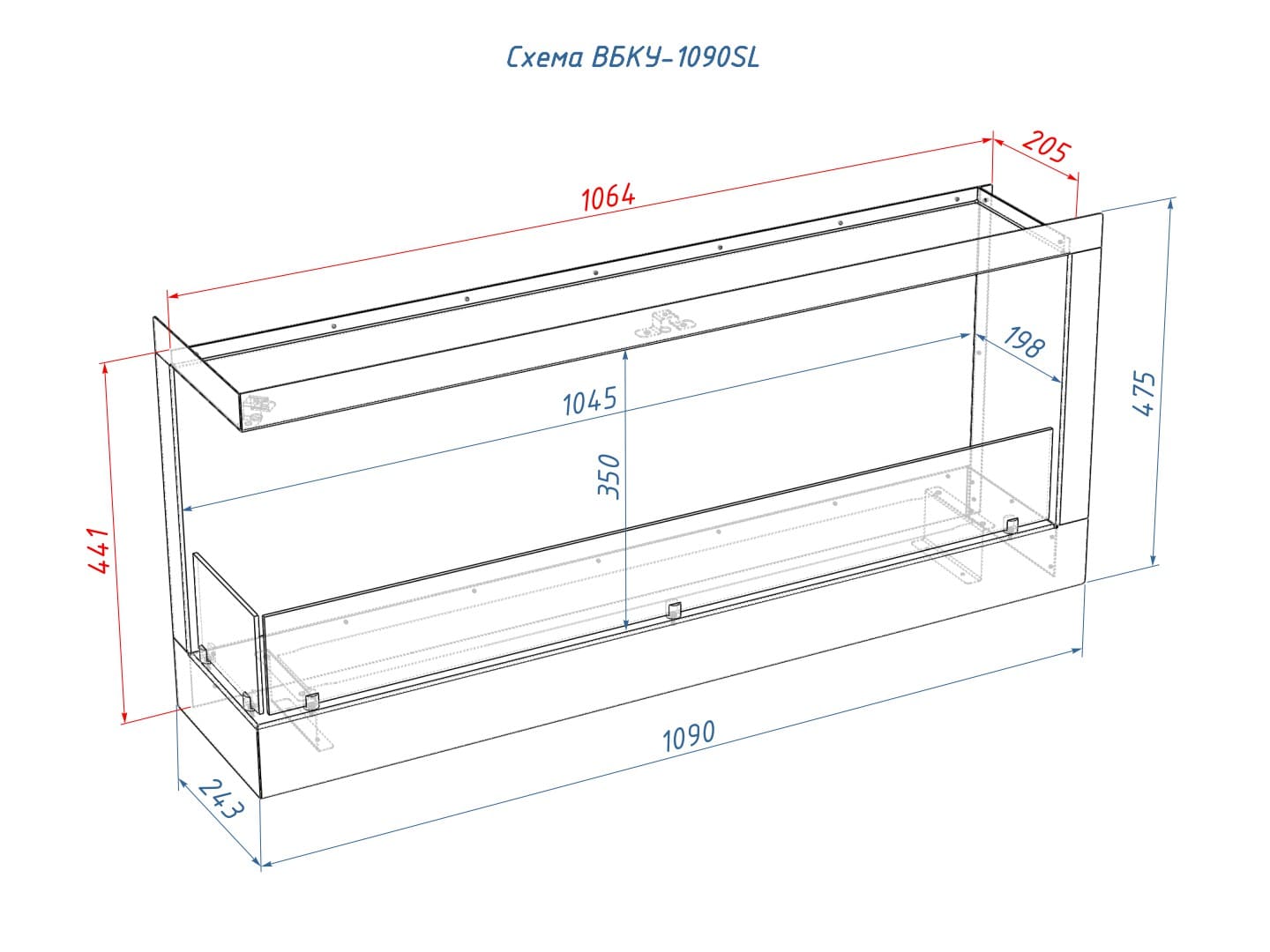 Описание встраиваемого углового биокамина Lux Fire 1090 S (левый угол)