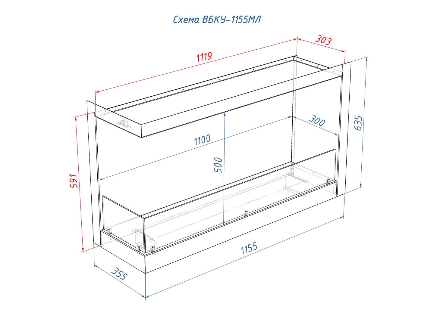 Описание встраиваемого углового биокамина Lux Fire 1155 M (левый угол)