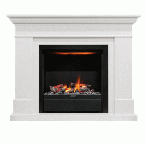 Каминокомплект «California» от производителя Dimplex оборудован очагом «Albany», в конструкции которого реализована паровая технология имитации пламени Opti-Myst. За счет этого такое изделие отличается максимальной реалистичностью и визуально от настоящего дровяного камина отличается мало. Портал комплекта имеет классическую конструкцию, но за счет дизайна очага изделие выглядит очень современно. Этому также способствует сочетание белого и черного цвета в оформлении. Камин достаточно широкий, но за счет своей расцветки выглядит не таким массивным, что позволяет установить его даже в небольших по площади помещениях.