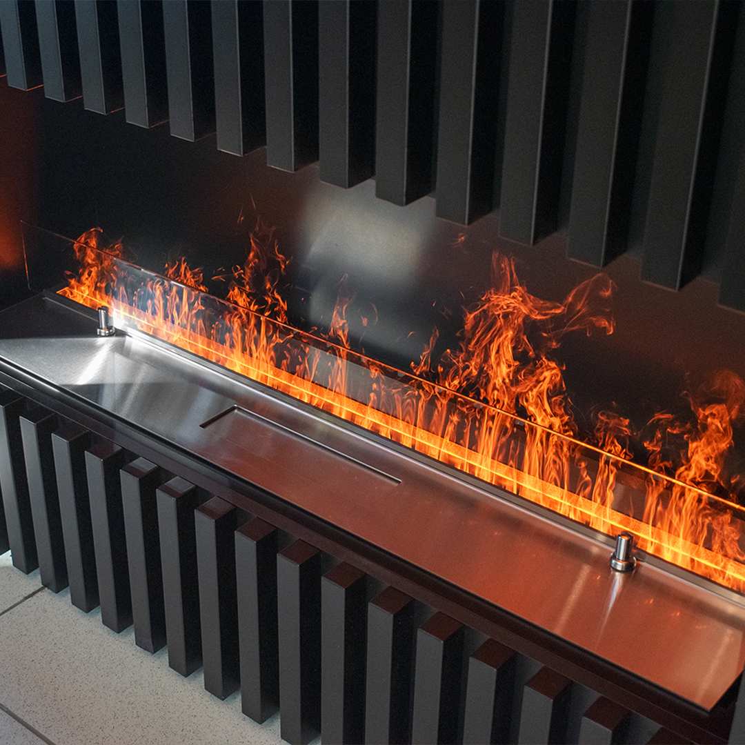Реалистичное пламя образуется при проецировании лучей на пару. Такая имитация огня имеет довольно высокую степень схожести с реальным пламенем и является полностью безопасной для окружающих, а испаряющаяся вода, повышает влажность воздуха, создает комфортный микроклимат.